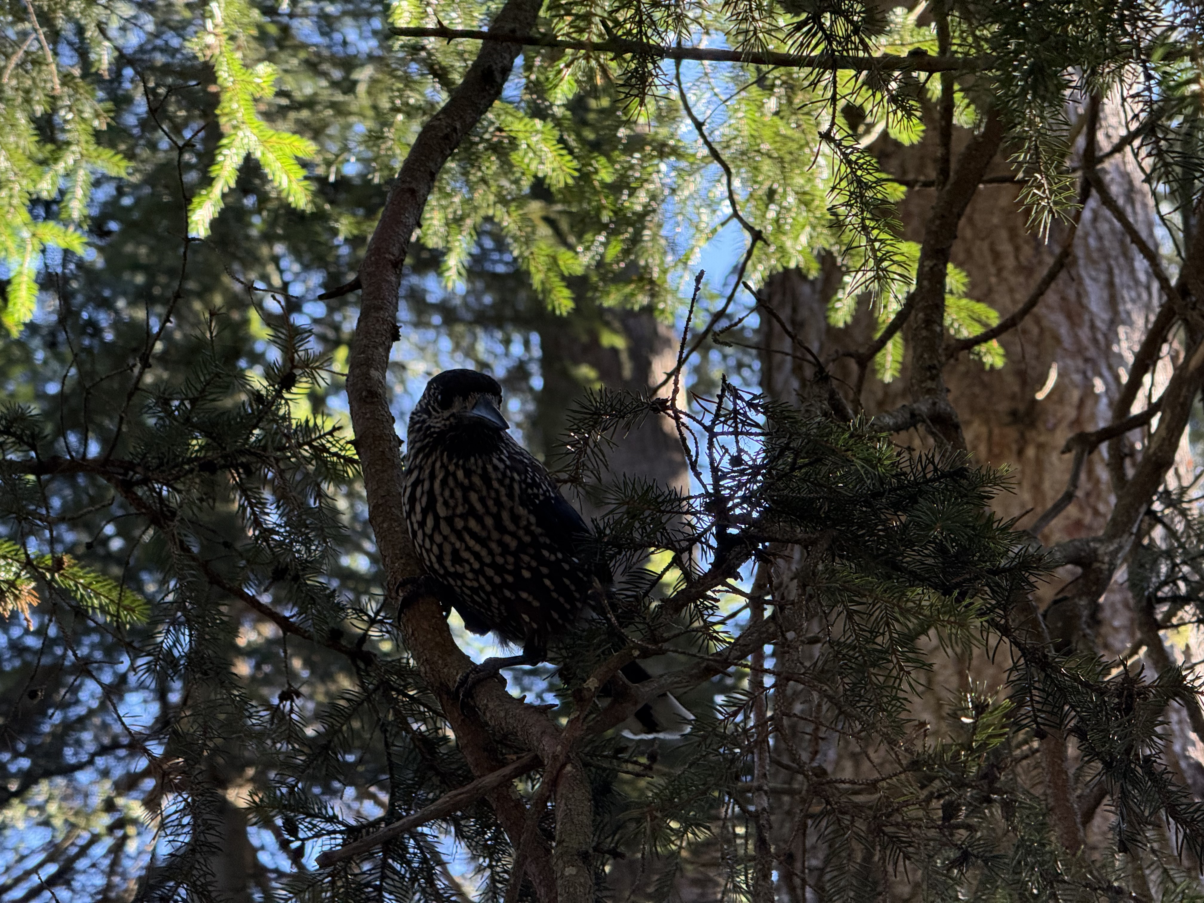 Tannenhäher 12. Oktober '25Graubündentanja [IMG_5394.jpeg] Kamera: iPhone 16 Pro Aufgenommen: 12.10.2025 10:45 Blitz: Nein Brennweite: 15.659999847383mm ISO: 200 Position: 46° 43′ 56.35″ N 9° 33′ 10.61″ E Verschlusszeit: 1/99s